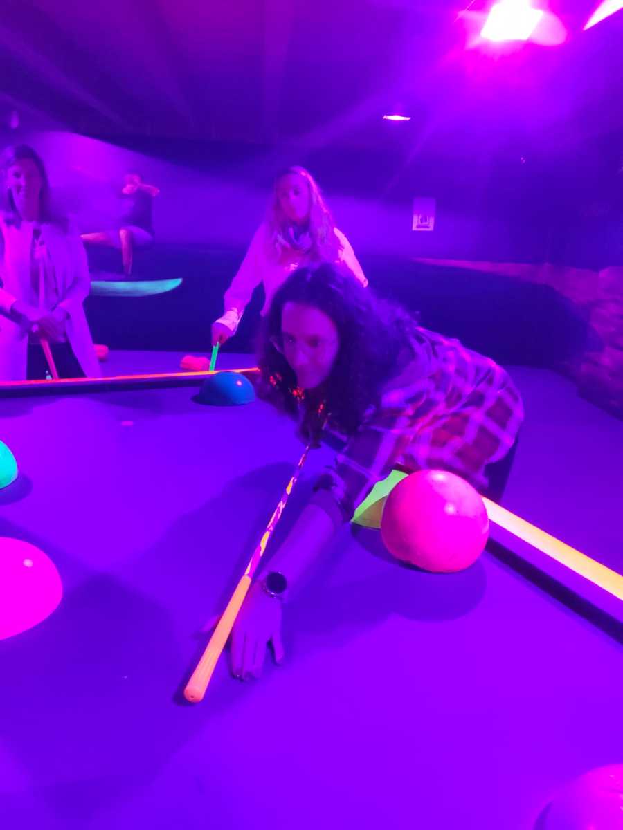 Dann ging es endlich los! Die Adventure Golf Anlage bot uns eine atemberaubende Kulisse. Die verschiedenen Bahnen waren kunstvoll gestaltet und führten uns durch eine fantasievolle Welt. Hindernisse, Brücken und knifflige Kurven sorgten für jede Menge Spaß und Herausforderung.