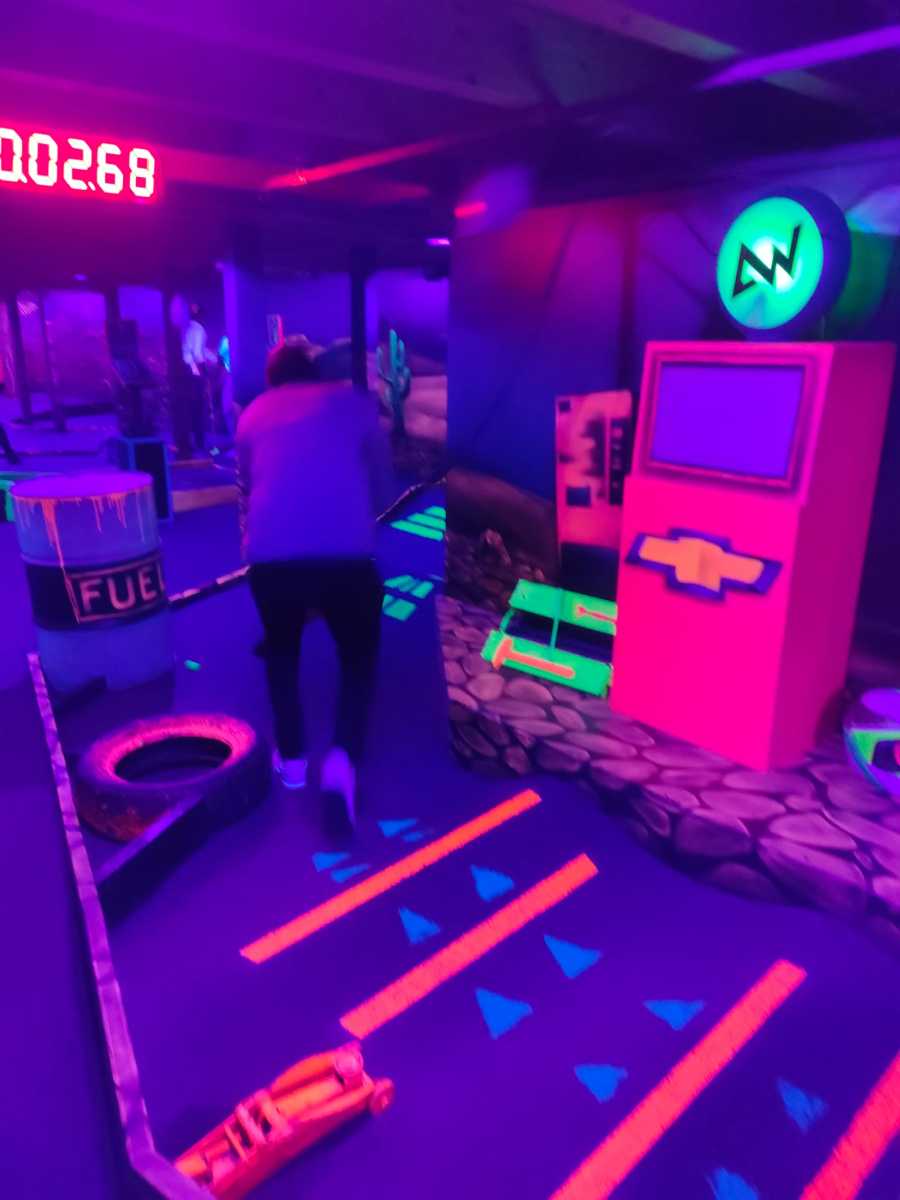 Dann ging es endlich los! Die Adventure Golf Anlage bot uns eine atemberaubende Kulisse. Die verschiedenen Bahnen waren kunstvoll gestaltet und führten uns durch eine fantasievolle Welt. Hindernisse, Brücken und knifflige Kurven sorgten für jede Menge Spaß und Herausforderung.